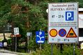 주차장 부근 도로 표지판, 동물 곰 출현 주의