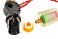 - 노랑 보빈(yellow bobbin) 속의 하양 가용성 디스크 = water activated pills in inflation device(물에 반응하는 팽창 장치에 들어가는 알갱이)