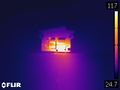 - 바이메탈이 있는 회로의 저항은 50m오옴으로 매우 높다. P=I^2 R이므로 15A라면 11W 소모된다. 이 때문에 주변 플라스틱가 녹았다.