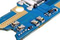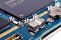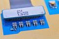 아랫쪽 셀룰라 안테나 단자 매칭회로. 안테나 연결용 전송라인은 PCB로