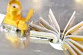 - RF 측정 두 핀. 접지용 동박을 핀 주변으로 둥글게 말아서, 매우 짧은 길이를 갖는 동축케이블처럼 만들었다.