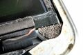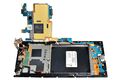 - 태블릿 위쪽에 있는, 커넥터용 F-PCB 부근 검정색 직조 차폐 테이프와 철판에 붙인 금색 부직포 차폐 테이프
