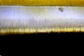 알루미나를 레이저 천공으로 절단. 표면에 유리막으로 두껍게 형성되어 있다.