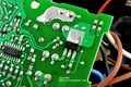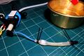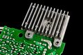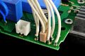 양면 PCB에서, 경로 단축을 위해 사용된 AC전류용 Insulated staple jumper wire 형태의 점퍼 저항기