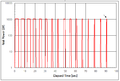 - 초기 히터 가동 파형. PWM 방식이다. 주기는 약 6초이고 width는 3.5초에서 0.5초를 보인다.