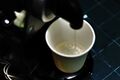 - 잔 선택 버튼을 누르고, 캡슐을 넣고, 잔 선택 버튼을 누른다. 녹색불이 깜박인다.