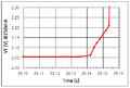 - 샘플 #1, ~100mA까지 전류를 5분동안 상승시키면서 Vf를 측정하여 이를 pn-접합부 추정 온도로 환산함.